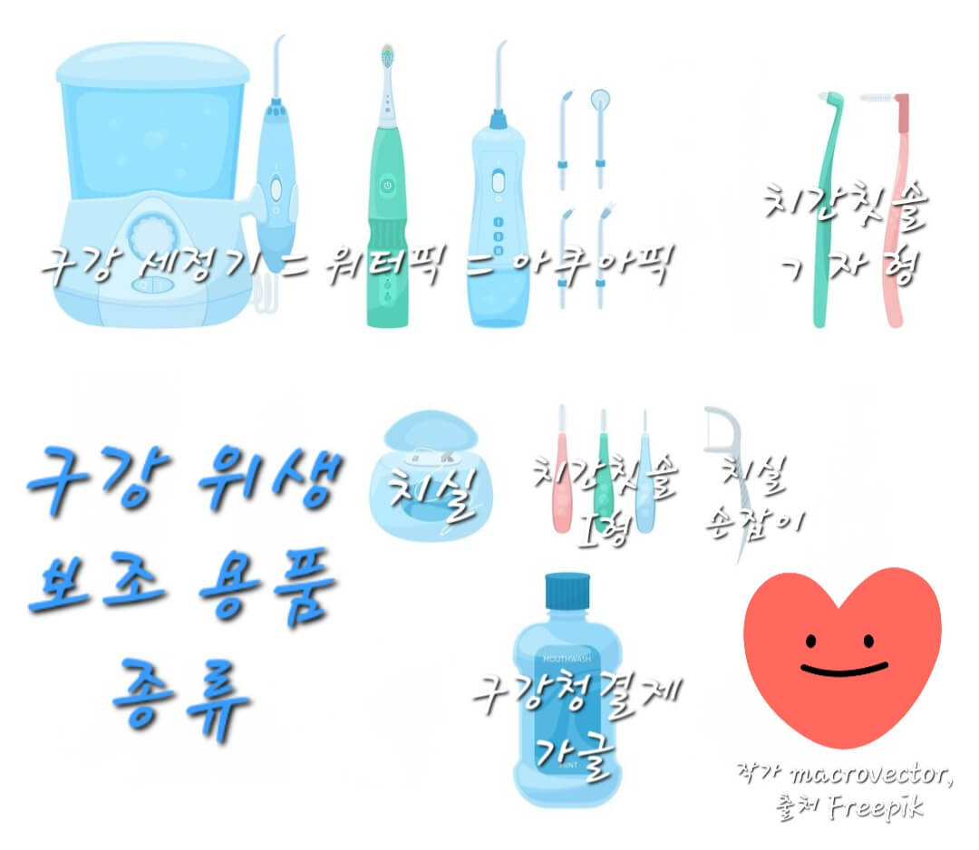 구강 위생 용품 이란 구강위생 확보, 구강건강의 증진 및 유지 등의 목적으로 제조된 칫솔, 치약 등이 있습니다. 일반적으로 칫솔과 치약의 중요성에 대해 인지하고 있지만, 이 두 가지 만으로는 완벽한 구강건강을 유지하기에는 부족함이 있습니다. 구강위생용품인 칫솔과 치약 이외에 여러 종류의 구강 위생 보조 용품이 있습니다. 오늘은 구강 위생 보조 용품의 종류를 하나씩 살펴보도록 하겠습니다.
